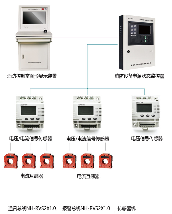 智能消防设备电源监控系统,是依据国家标准《消防设备电源监控系统》研制开发的,该系统由消防设备电源状态监控器,电源总线,通讯总线和其连接的电流信号传感器、电压信号传感器、电流/电压信号传感器、中级模块箱等设备组成,通过传感器对消防设备的主电源和备用电源进行实时检测,从而判断电源设备是否有过压、欠压、过流、断路、短路以及缺相等故障。当故障发生时能快速在监控器上显示并记录故障的部位、类型和时间,并发出声光报警信号,从而有效保证了火灾发生时消防联动系统的可靠性。