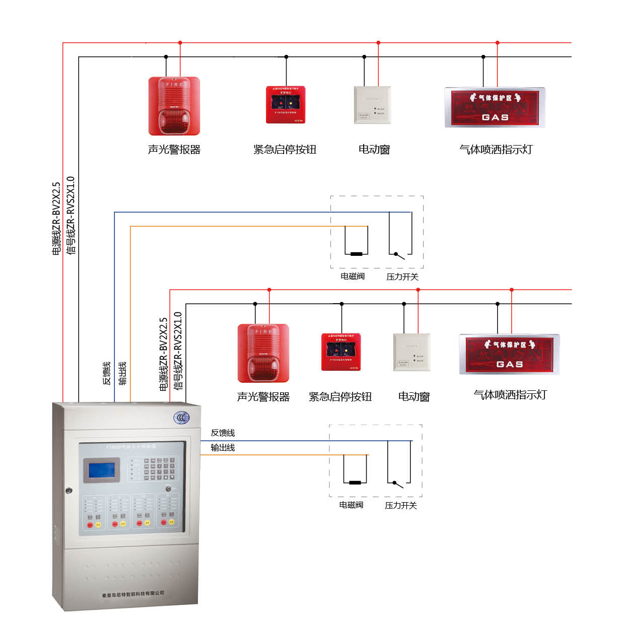 气体灭火控制器专用于气体自动灭火系统中,融自动探测、自动报警、自动灭火为一体的控制器,气体灭火控制器可以连接感烟、感温火灾探测器,紧急启停按钮,手自动转换开关,气体喷洒指示灯,声光警报器等设备,并且提供驱动电磁阀的接口,用于启动气体灭火设备。